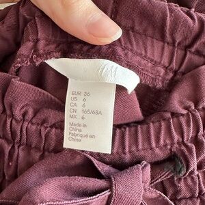 H&M Paperbag Cinched Waist Chic Burgundy Skirt with Tie Waist, Size 6