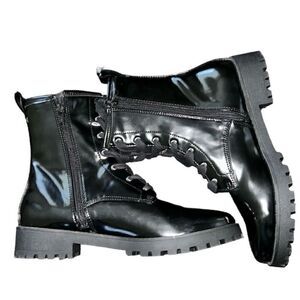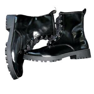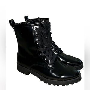 H&M Patent Faux Leather Black Lace Up Boots.NWOT