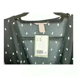 H&M short black and white satin flowy tie-wrap dress, size XXL. NWT! Chic satin wrap dress with soft draping fabric. Deep V-neck, adjustable button and tab inside and outside tie to create wrap. Long sleeves with slight bell detail at the opening.