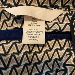H&M Tan/Black Button down shirt in a patterned viscose weave with contrasting black piping. Loose fit with notched lapels, buttons down the front.