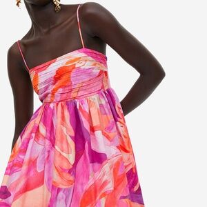 H&M Patterned Mini Dress Size Small Lined Zipper on the side 100% cotton