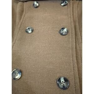 This H&M Pea Coat is a classic and versatile piece for women in size 12, designed in a solid brown color with a mid-length and double-breasted closure featuring buttons. Made from a polyester blend with polyester lining, it is suitable for travel, casual, and business occasions. The coat has long sleeves, pockets, and stylish accents like stitching. This timeless coat from H&M offers a regular fit and is perfect for wearing in winter, summer, fall, or spring seasons.