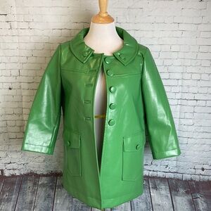 H&M Peacoat Vegan Faux Leather Size 8 Green Elevated Basic Retro Pop of Color