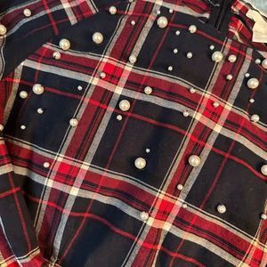 H&M Pearl Embellished Plaid Blouse