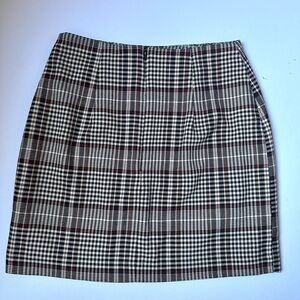 This H&M mini skirt features a sleek pencil silhouette in a classic black and white color scheme, perfect for a professional setting. The structured fabric and tailored fit offer a polished look, while the mini length adds a modern touch. Ideal for pairing with a blouse or blazer for a chic work ensemble.