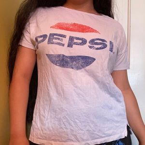Vintage-looking Pepsi T-shirt. Authentic. Very lightweight and has small slits on the sides of the shirt. White colored and breathable material! Size S. Like new. Can be worn with a casual outfit, or worn up!