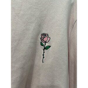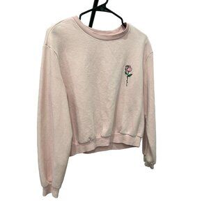 H&M Pink Crewneck Long Sleeve Rose Embroidered Pullover Sweatshirt Sz M