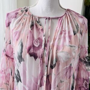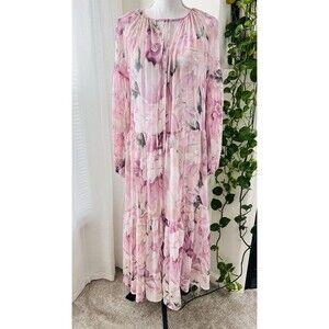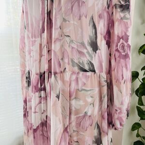 H&M Pink Floral Super Soft Flowy Chiffon Ruffly Tiered Sheer Maxi Dress - Small