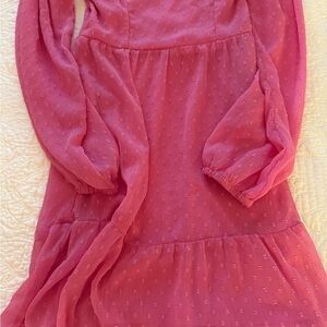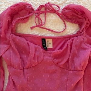 H&M Hot Pink mini dress with long mesh sleeves with tie at nexk #partydress #summer #homecoming #birthdaydress #backtoschool