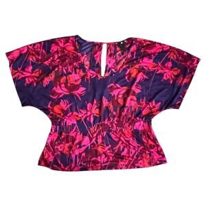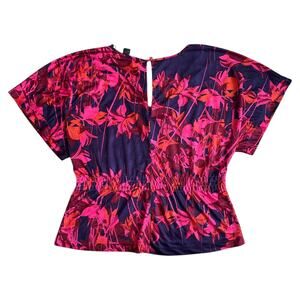 H&M Pink Multicolor Boat Neck Short Sleeve Top, S
