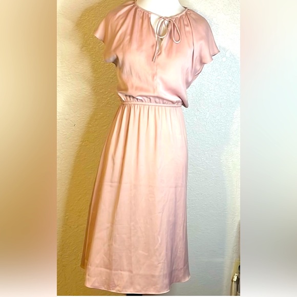 H&M Pink Ruched Ruffled Midi Dress