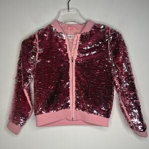 H&M Pink Sequin Bomber Jacket Girls Size 6-7