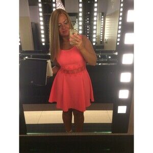 H&M Coral Cut Out Fit & Flare Dress, Size 10