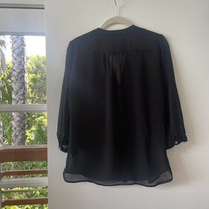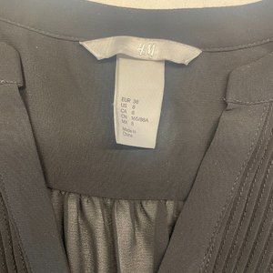 H&M Pin-tucked Blouse with 3/4 length Sleeve and V-Neck in Black, Size 8