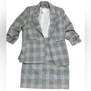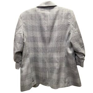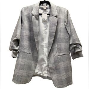 •Blazer features notched lapels and ruched sleeves for a chic, relaxed look