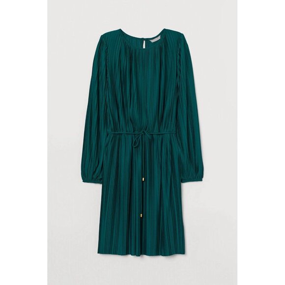 H&M Pleated Emerald Green String Tie Dress Size Size M Holiday Party Christmas