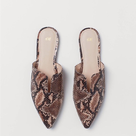 H&M Pointed Mules:Dark beige/Snakeskin-patterned Size 8