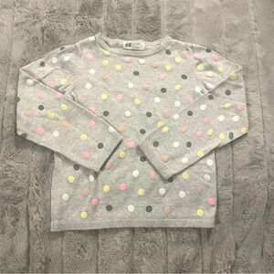 So cute! Fine knit so it’s light enough to wear as a shirt or over a shirt. Colorful polka dots. No stains or holes.