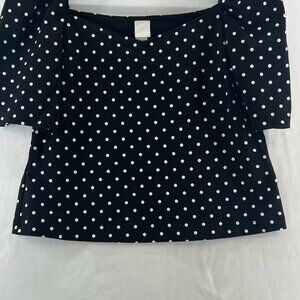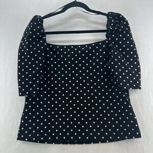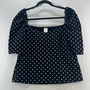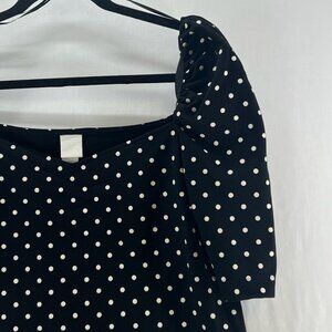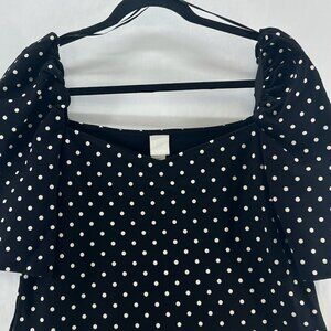H&M Polka Dot Puff Sleeve Top Womens L Square Neck Blouse Stretchy Black White