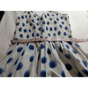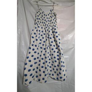 H&M Polka Dot Vneck Smocked Spaghetti Straps Blue White Knee Length XS Pull On