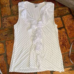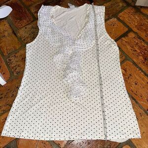 H&M Whitish and black polka dot Ruffle blouse sleeveless Sz M Good condition