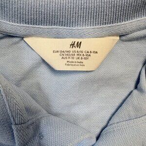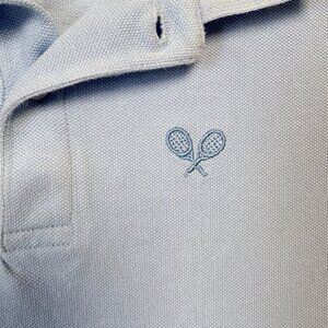 H&M Polo Shirt Boys 9-10Y Blue Tennis Racket Embroidery 100% Cotton Short Sleeve