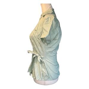 H&M Poplin Pinstripe Wrap Top Green White Knit Short Sleeve V-Neck Blouse 6