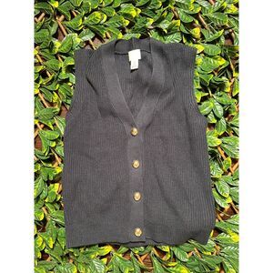 H&M Preppy Blue Rib-Knit Button-up Sweater Vest Size Small