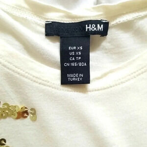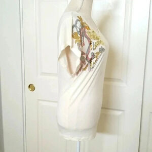 Boatneck top with printed and sequined detail Bust 20" Length 26" Size: XS