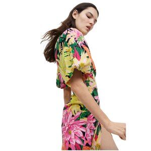 H&M Puff Sleeved Wrap Dress Green/Floral Bright Tropical XXL