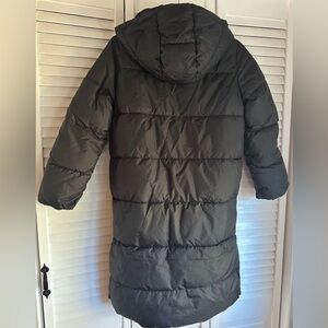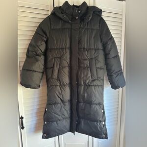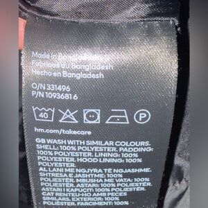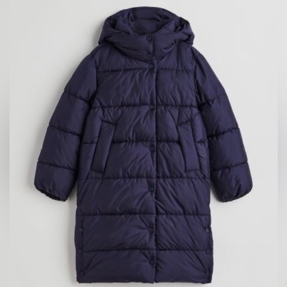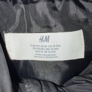 H&M kids puffer jacket! Size 18 (13-14 yr old). I normally wear a size XS-S and this fits perfectly. I can wear it with big sweaters and there is still plenty of room. Super warm, I live in New England and this jacket makes the winters bearable. I’m 5’4-5’5 and this comes to about my shin! Make me an offer :)