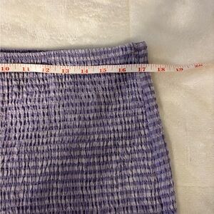 This playful mini skirt from H&M features a charming purple and white checkered pattern, perfect for casual or resort wear. The bubble style and ruffled hem add a touch of whimsy, making it a standout piece for any relaxed occasion. Crafted from lightweight fabric, it offers both comfort and style.
