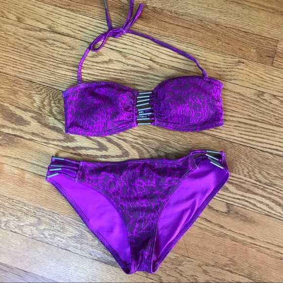 Super cute purple patterned bathing suit! Worn once! Bottoms are US 4 and Top is US 6.