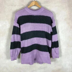H&M Purple Striped Open Knit Crewneck Sweater NWOT XS