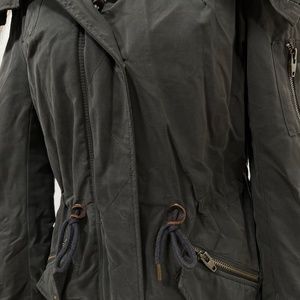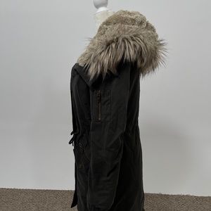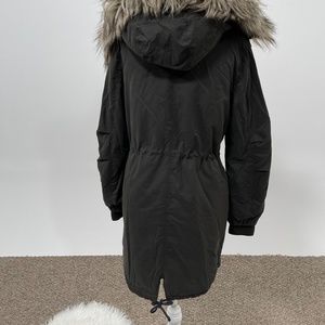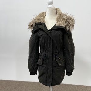 H&M Quilted Lined Hooded Faux Fur Trim Full Zip Woman Coat Size 2 Olive Color