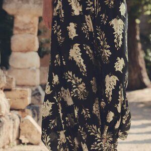 Flared maxi skirt in a woven viscose blend. High waist and ruffle-trimmed waistband with covered elastic and a narrow drawstring. Unlined. Worn once.