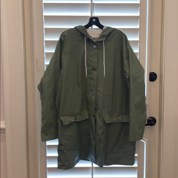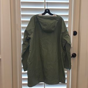 H&M Label of Graded Goods hooded olive green long rain jacket with silver hardware snaps. 2 pockets in the front and draw string hood. Worn only a few times.
