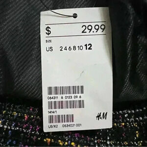H&M Rainbow Tweed Mini Skirt Size 12 NWT