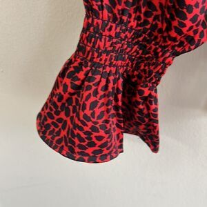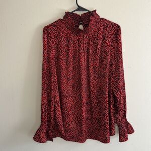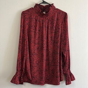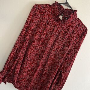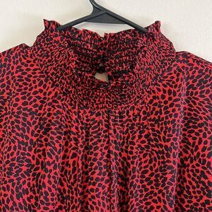 H&M Red & Black Animal Print Hi Neck Blouse - Size Large