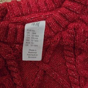 H&M Red Cable Knit Cotton Blend Sweater Infant Size 18m Christmas Valentines-MC1