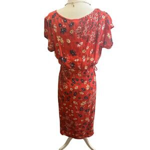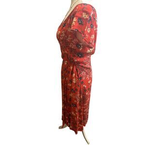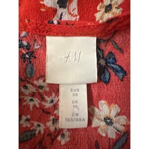 H&M Red Floral Lined Cap-Sleeved Wrap Dress (Size 6)