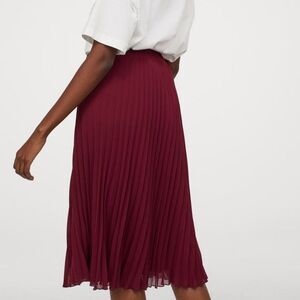 H&M Red Pleated Fit & Flare Skirt Satin Tulle 12