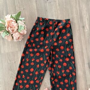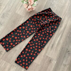 H&M Red Poppies Floral High Waist Straight Leg Trouser Pants