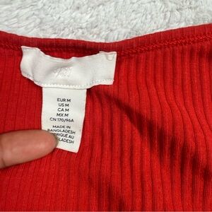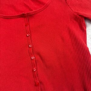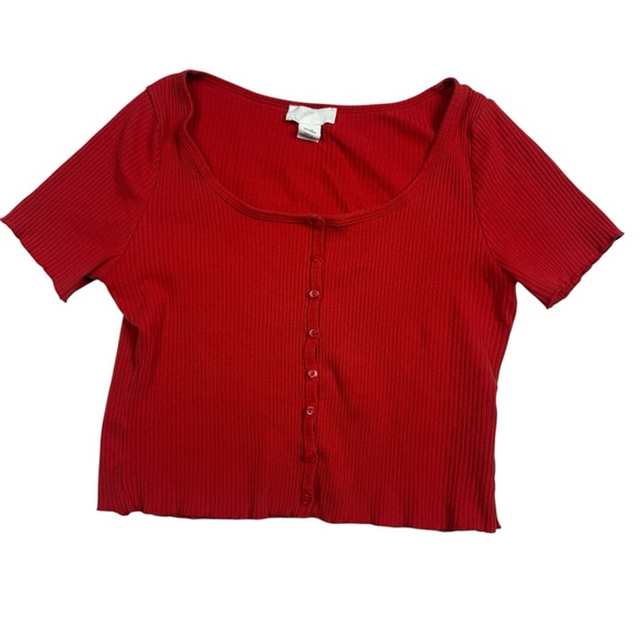 H&M Red Ribbed Button-Down Top