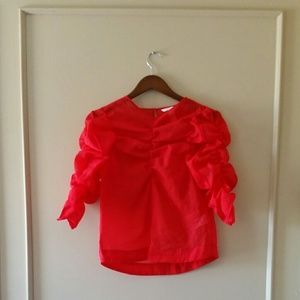 H&M Red ruffled top, with midsleeves. Shear and light material. Excellent condition