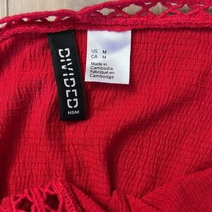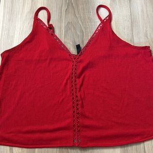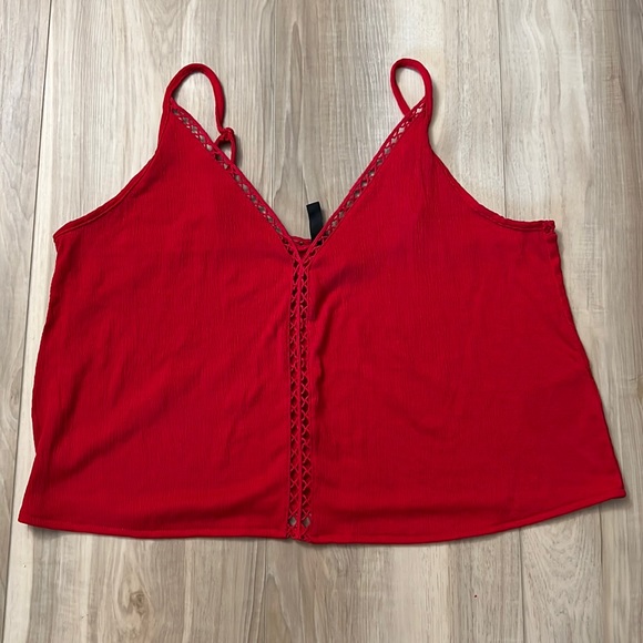 Color: red; size: medium; has adjustable straps. Only been worn once.