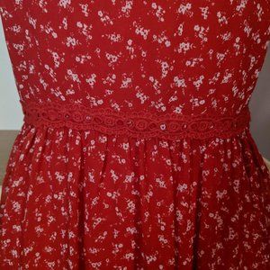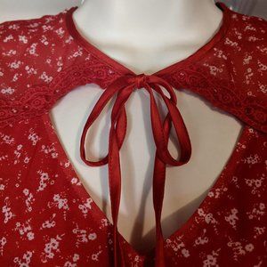 H&M Red and White Floral Print Dress with Ribbon Neck Tie
