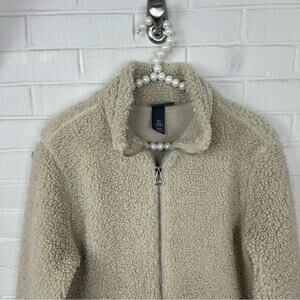 Good pre worn condition. Jacket is a little more tan than cream compared to the stock photo. Size men’s small. Can be worn as a unisex women’s style. Has front pockets. H&M regular fit zip up Teddy jacket. All sales final.