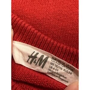 Get your little one in the festive spirit with this adorable H&M Reindeer Sweater. The sweater features a solid pattern with a red color scheme, perfect for the holiday season. The long sleeve pullover sweater is made of 100% cotton knit fabric, ensuring comfort and durability.