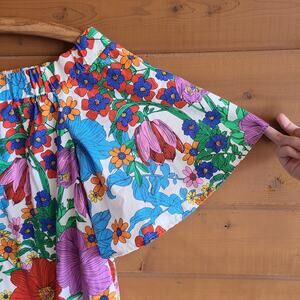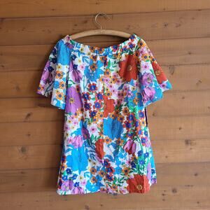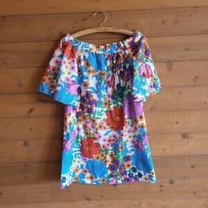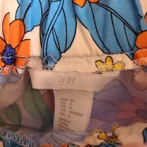H&M Retro Floral Psychedelic Off Shoulder Mod Mini Dress Size 4 Rainbow Botanic